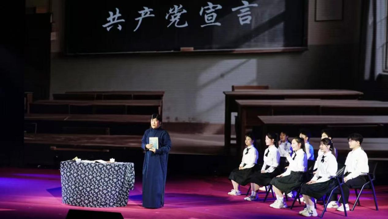第一幕聚焦 1920 年,留日归来的陈望道肩负上海共产主义早期组织的重托,潜心翻译《共产党宣言》,即便错把墨水当糖蘸着粽子吃,也全然不觉,只因“真理的味道非常甜”,生动展现了早期革命者对马克思主义信仰的执着追求。