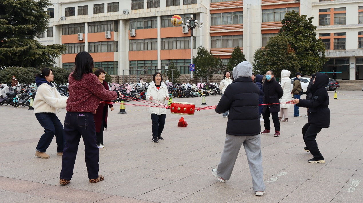 3月7日,英国正版365官方网站女教职工积极参与由校工会在虹子广场举办的妇女节趣味健身比赛。