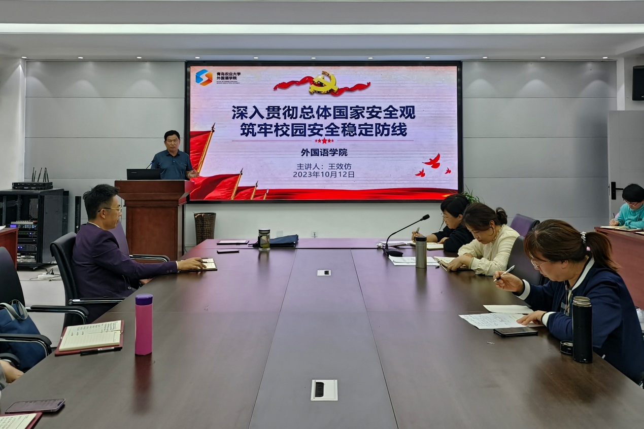 10月12日,英国正版365官方网站于文经楼C220会议室开展教职工政治理论学习,系统学习了习近平总书记总体国家安全观,并传达部署了青岛农业大学2023年秋季学期安全稳定工作会议精神。