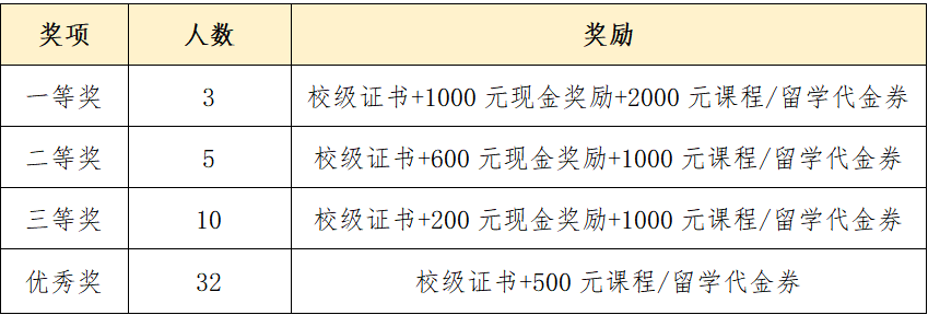 *最终获奖人数按照实际报名人数比例确定