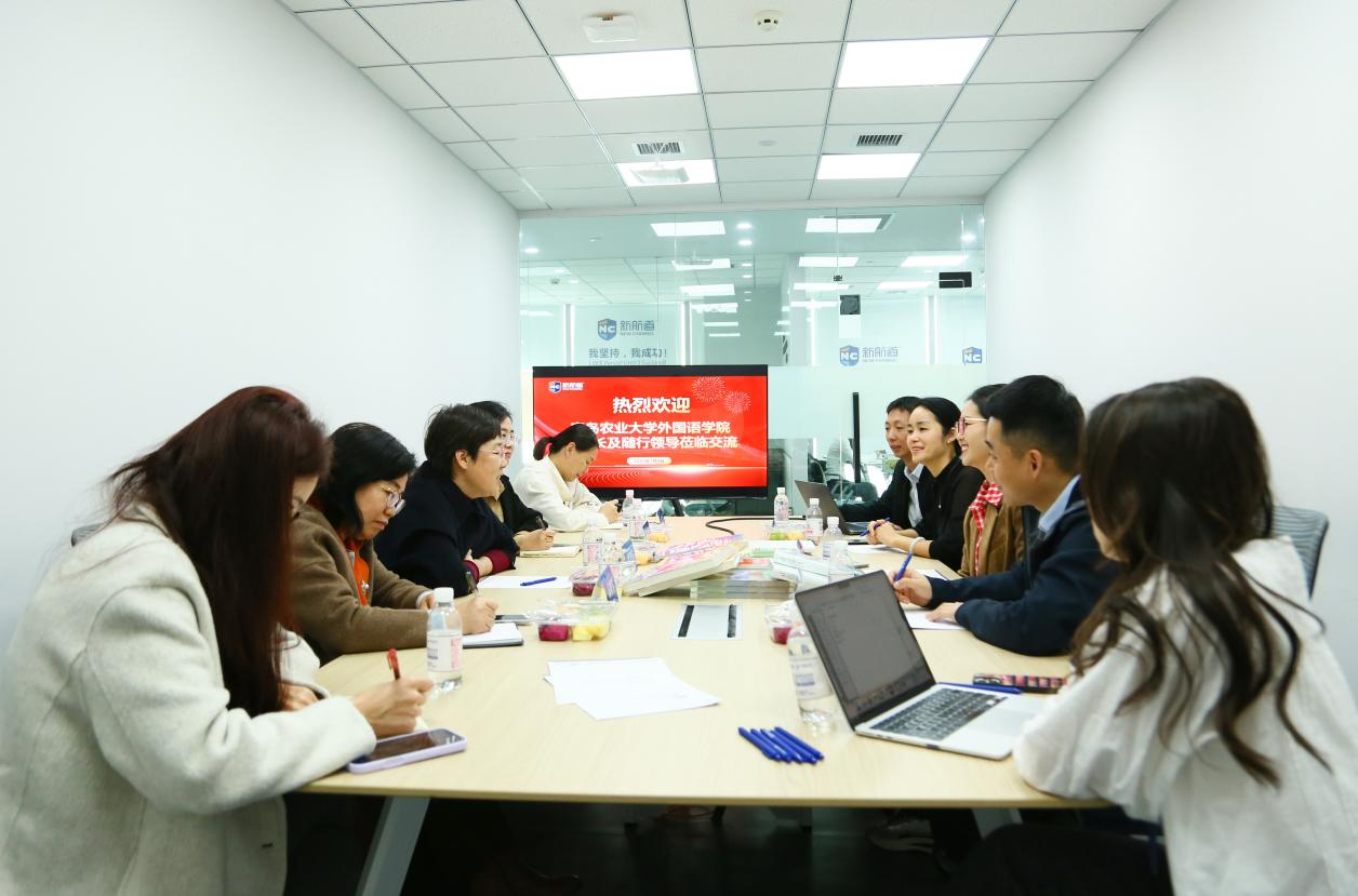 2025年11月11日上午,英国正版365官方网站院长纪卫宁、副院长高秀雪、学院团委书记线郁、学院MTI中心主任姚雪丽以及研究生代表赴新航道青岛学校开展访企拓岗活动。新航道青岛学校副校长文雅丽、人力总监张丽丽、市场总监黄广起、市场经理龚佳祺全程陪同。